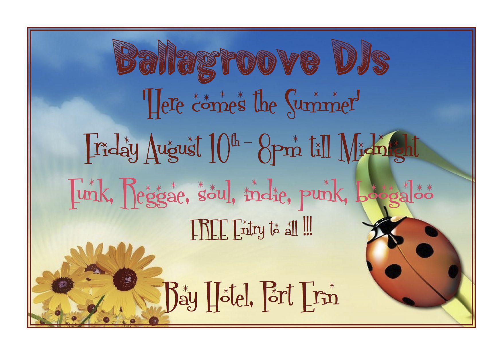 Standard music policy of Funk, Soul, Reggae, Indie, Boogaloo, Lift Music etc. with the Ballagroove DJ’s Gyp’n’Toots